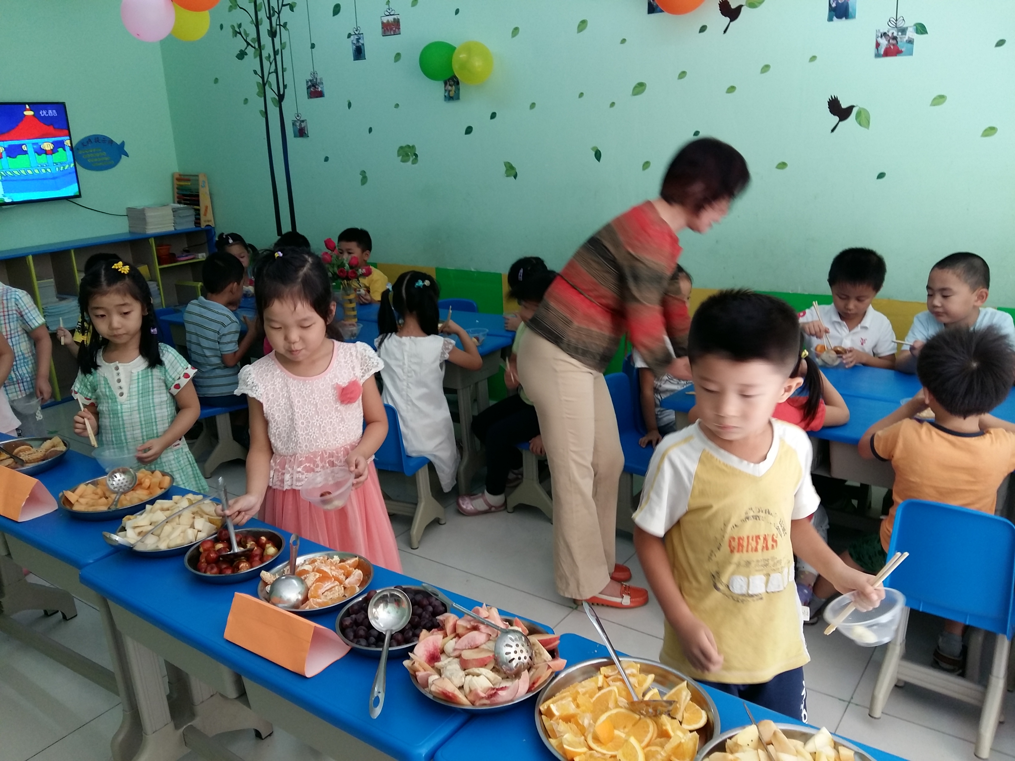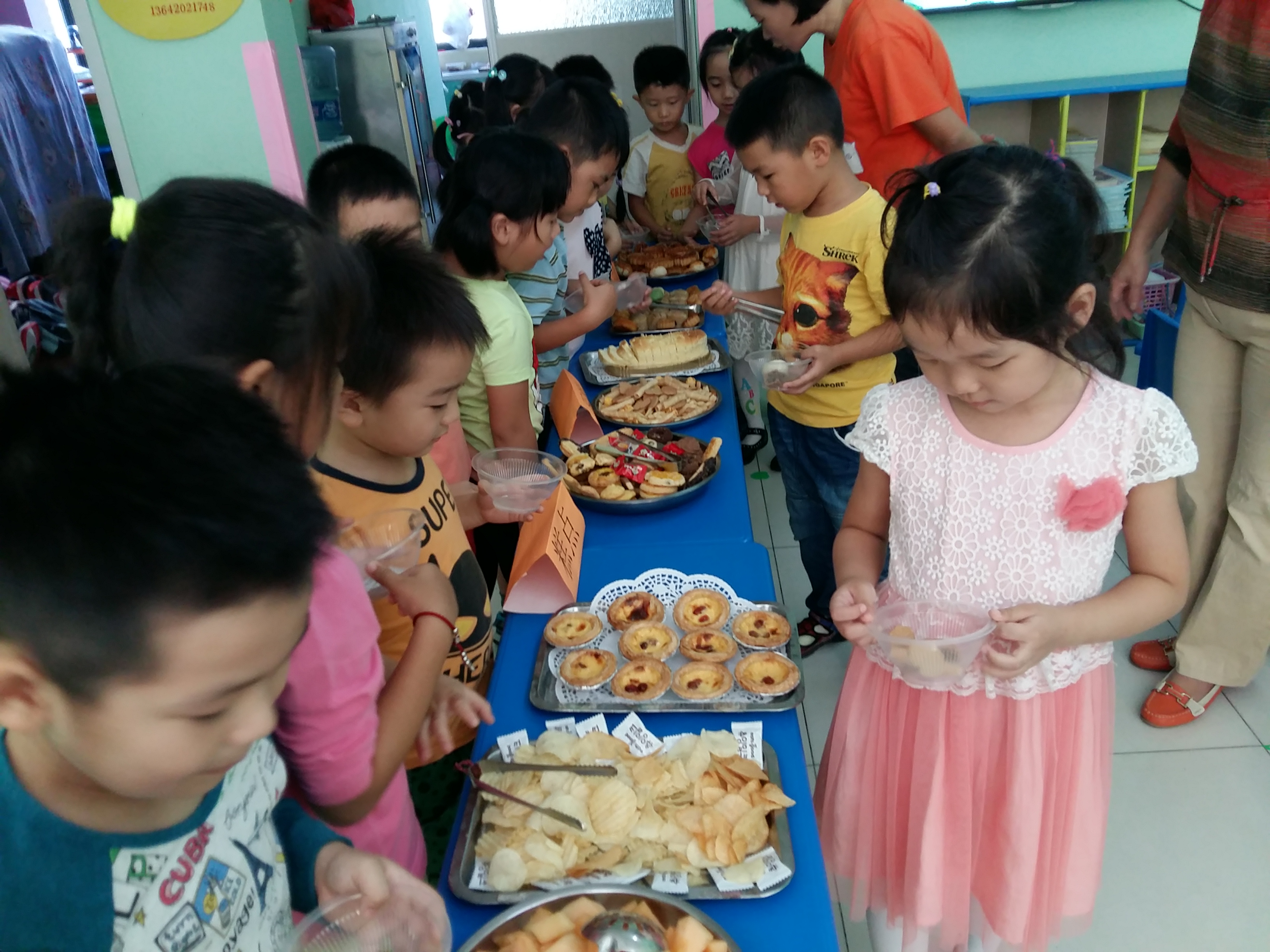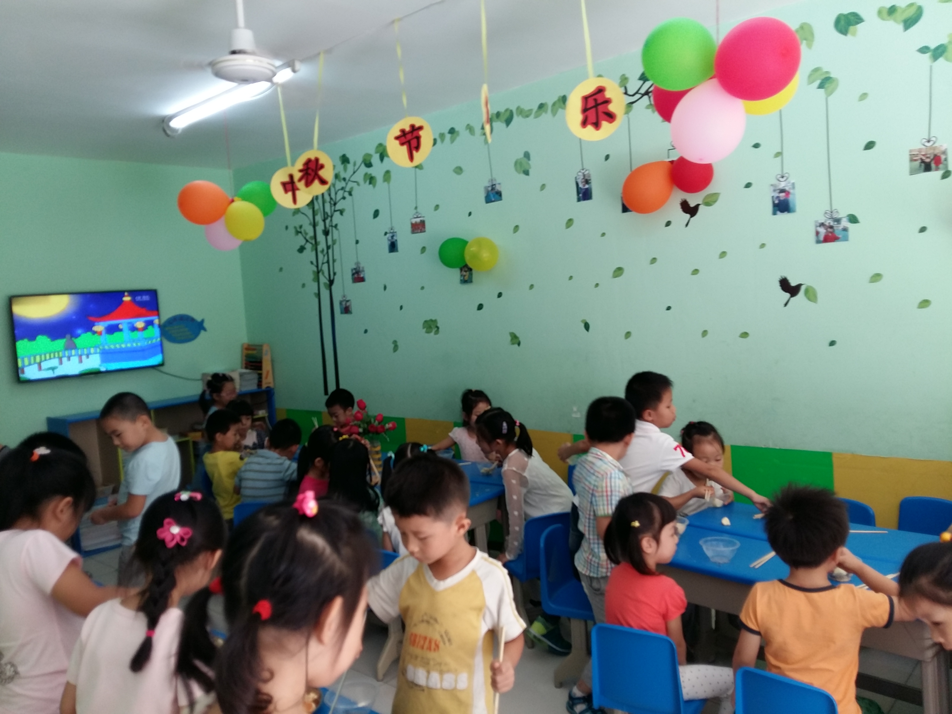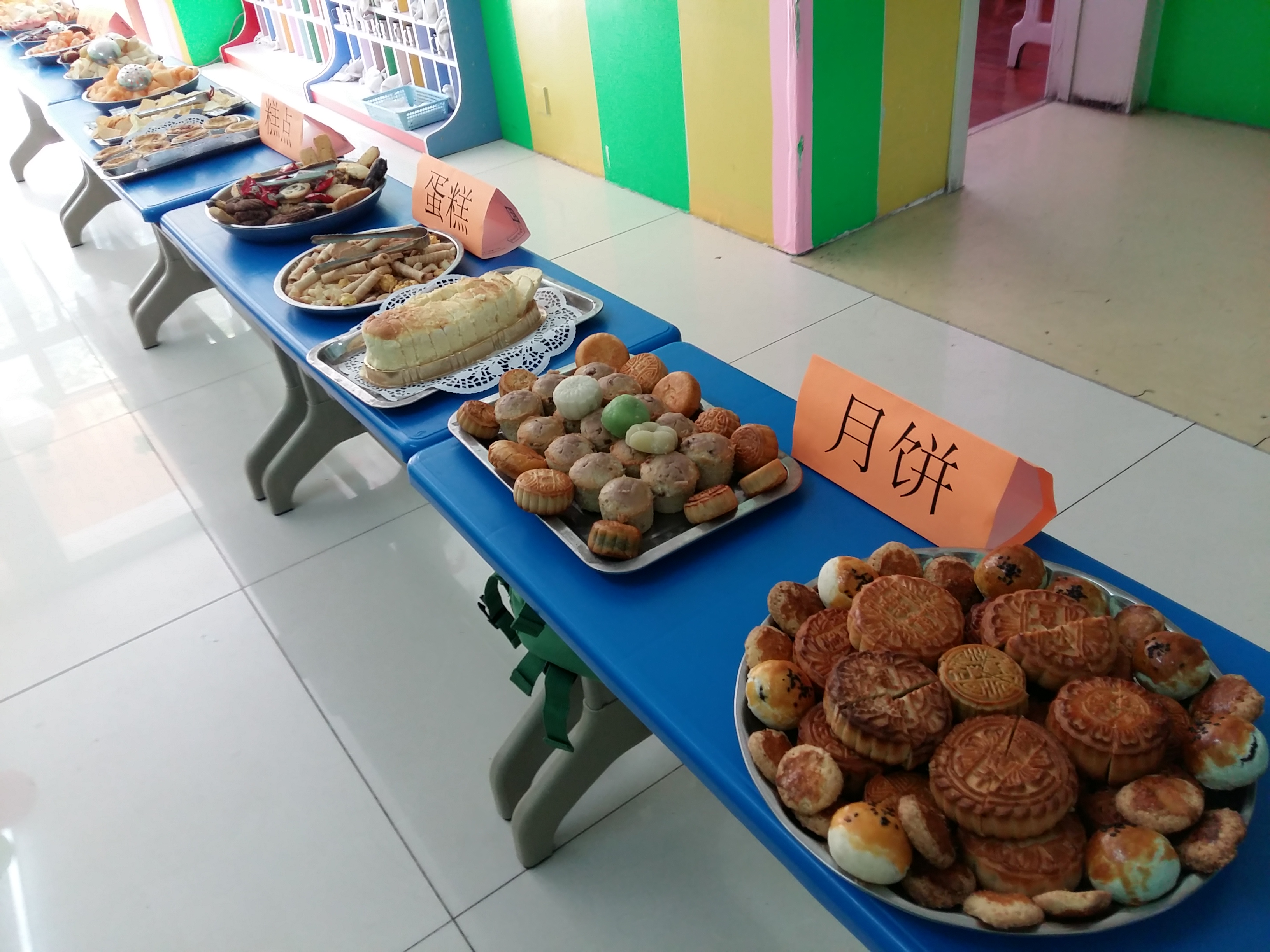 中秋节到了,学前班的小朋友通过观看中秋节的来历、品尝中秋食品、读古诗、儿歌、学唱中秋歌曲等形式来欢度中秋佳节。我们的中秋自助大餐受到了小朋友们的欢迎,一起来看看吧!