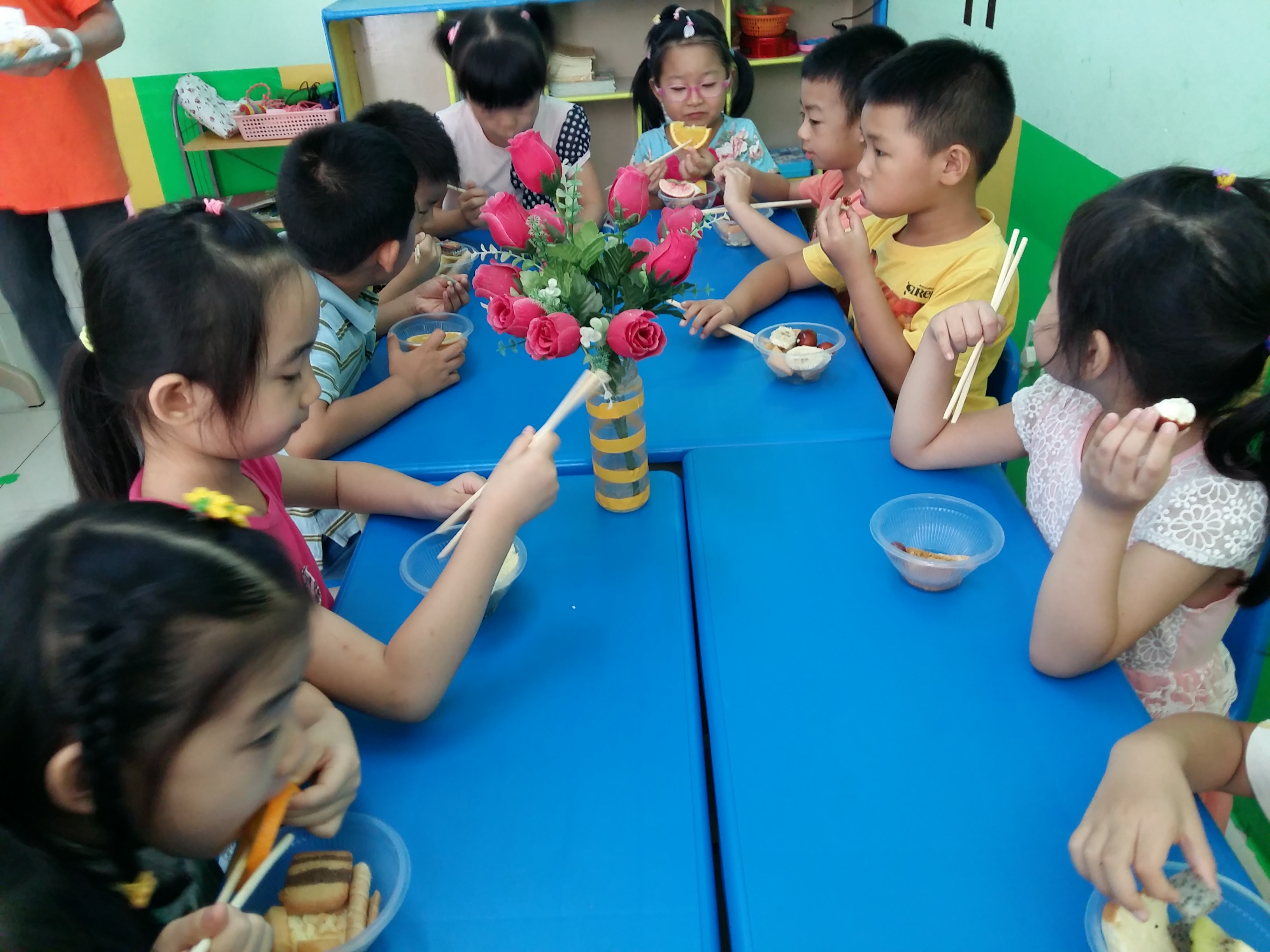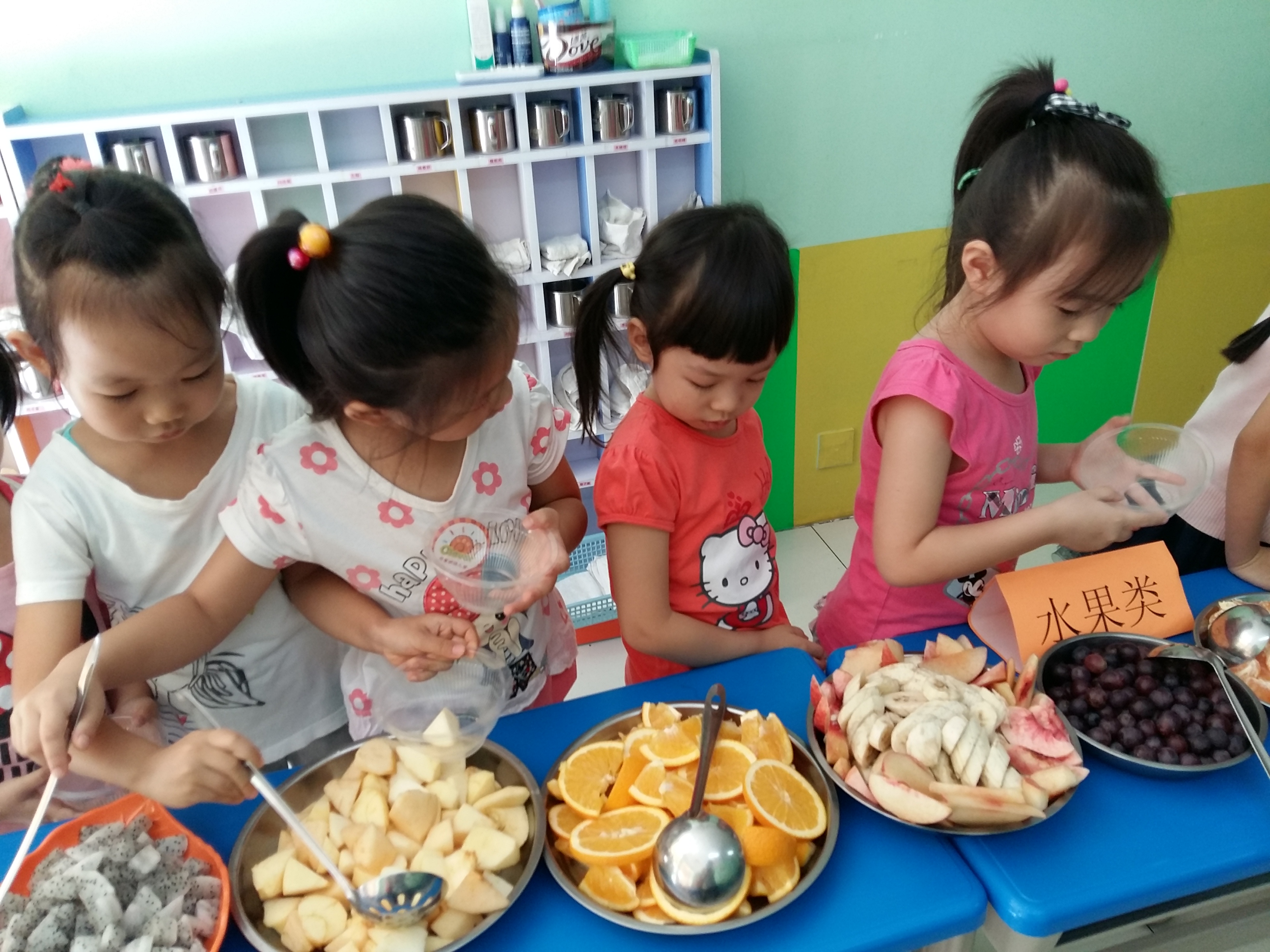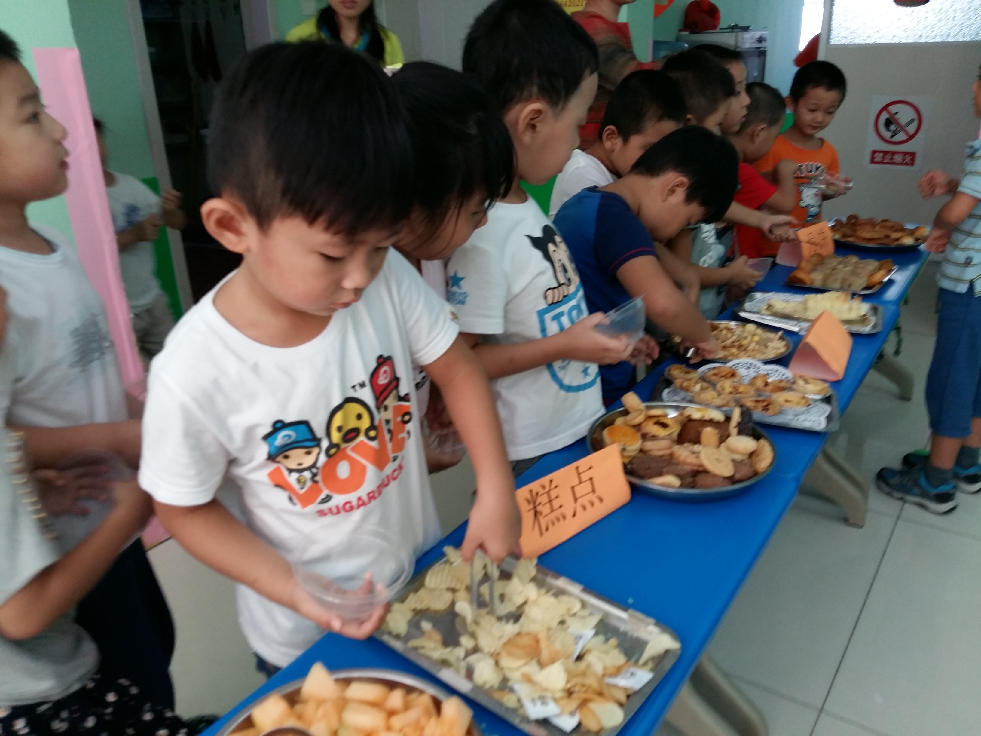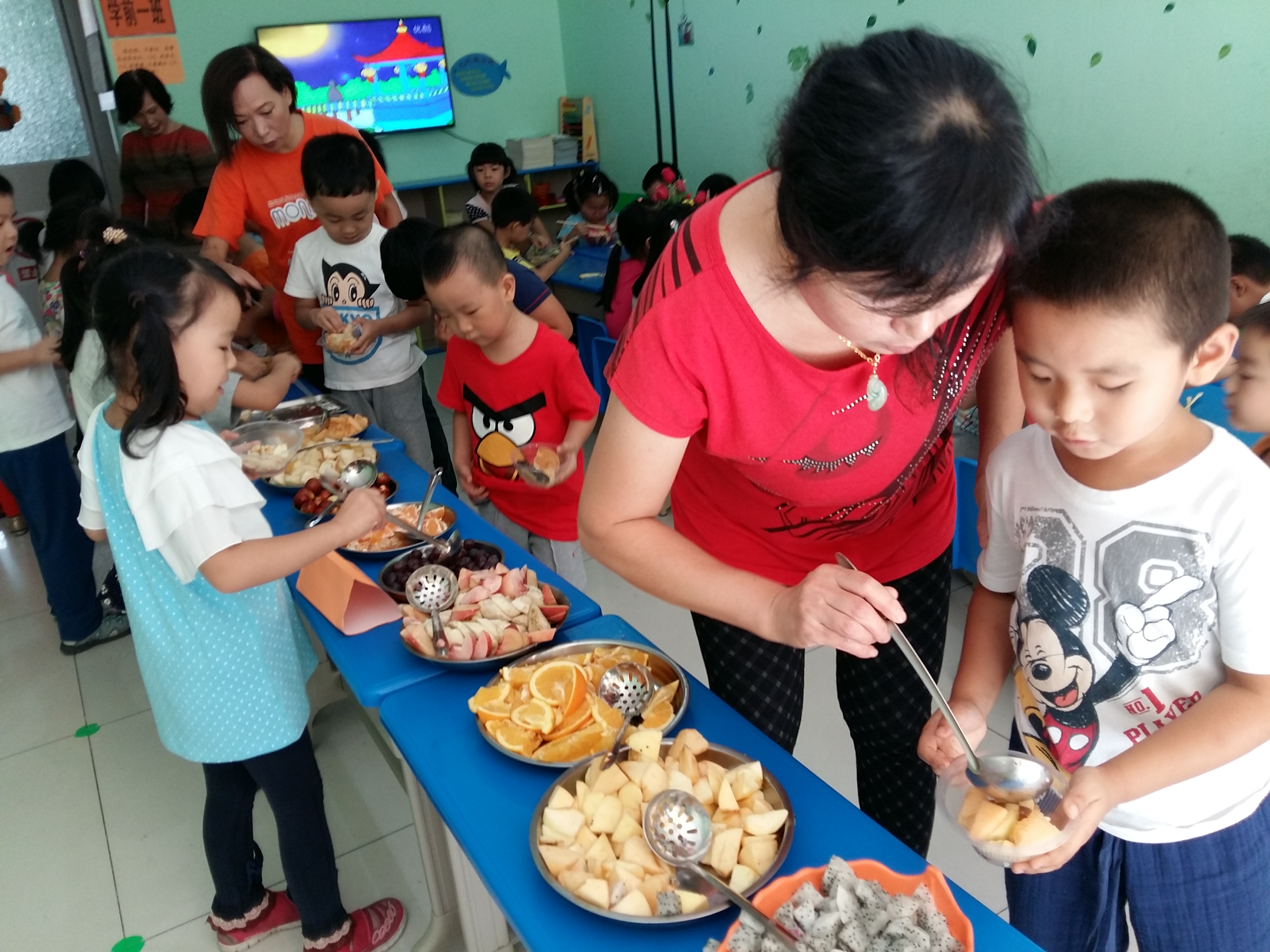中秋节到了,学前班的小朋友通过观看中秋节的来历、品尝中秋食品、读古诗、儿歌、学唱中秋歌曲等形式来欢度中秋佳节。我们的中秋自助大餐受到了小朋友们的欢迎,一起来看看吧!