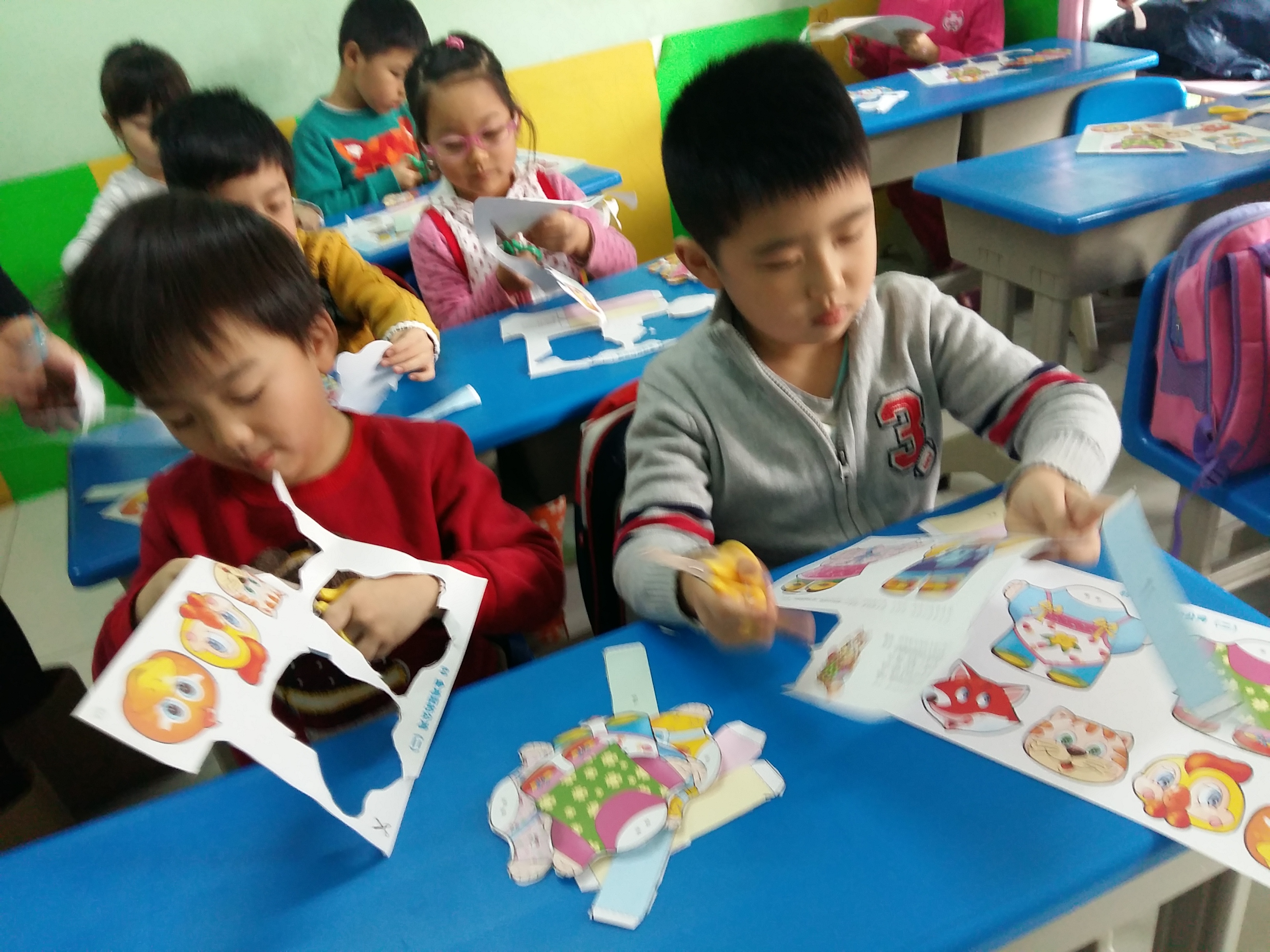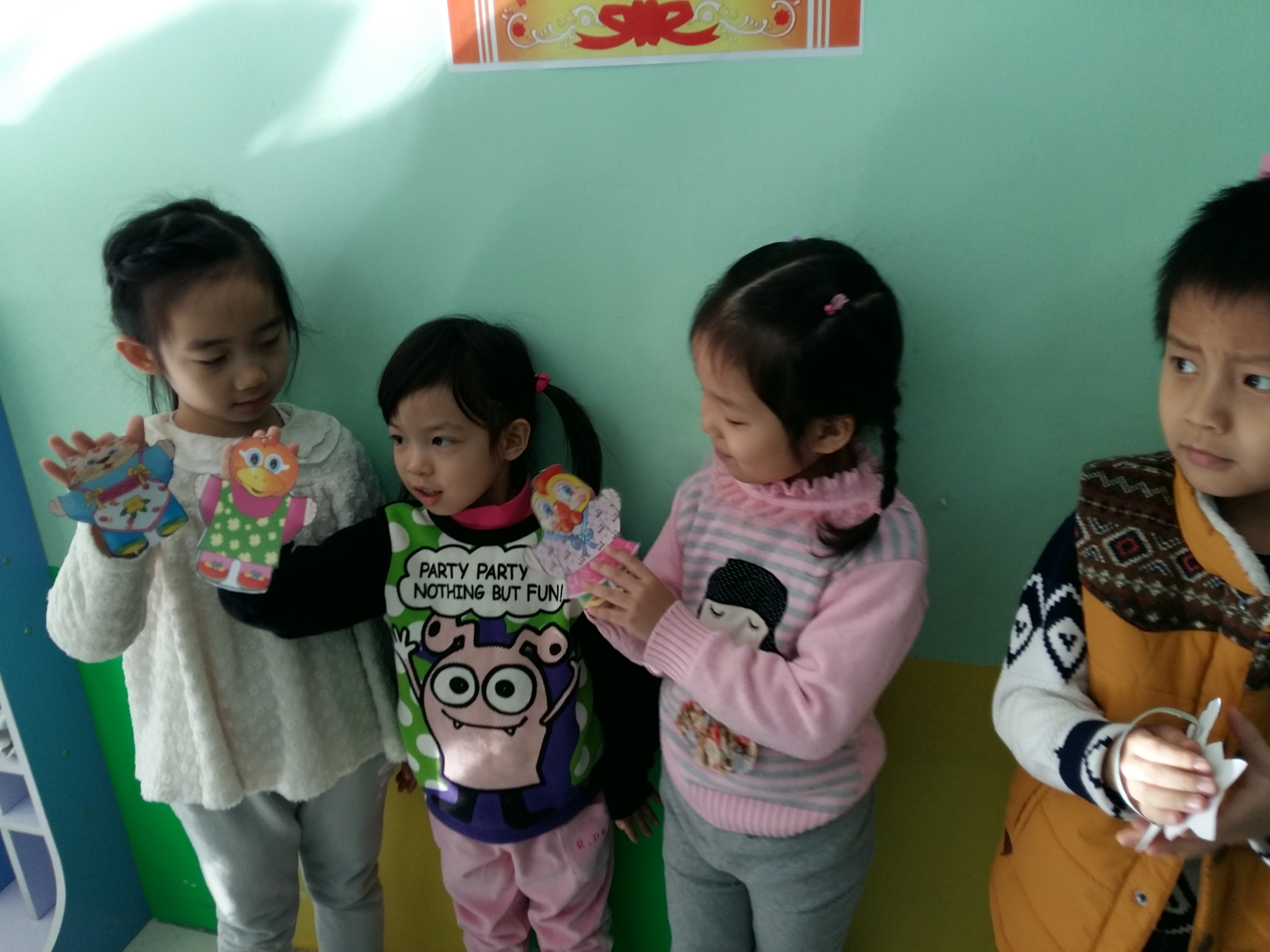 孩子们在制作手偶