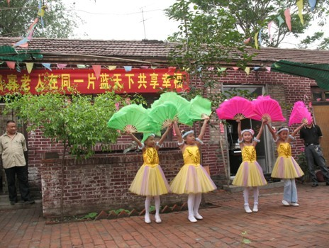 学生参与校外实践基地活动,为敬老院的老人们表演节目